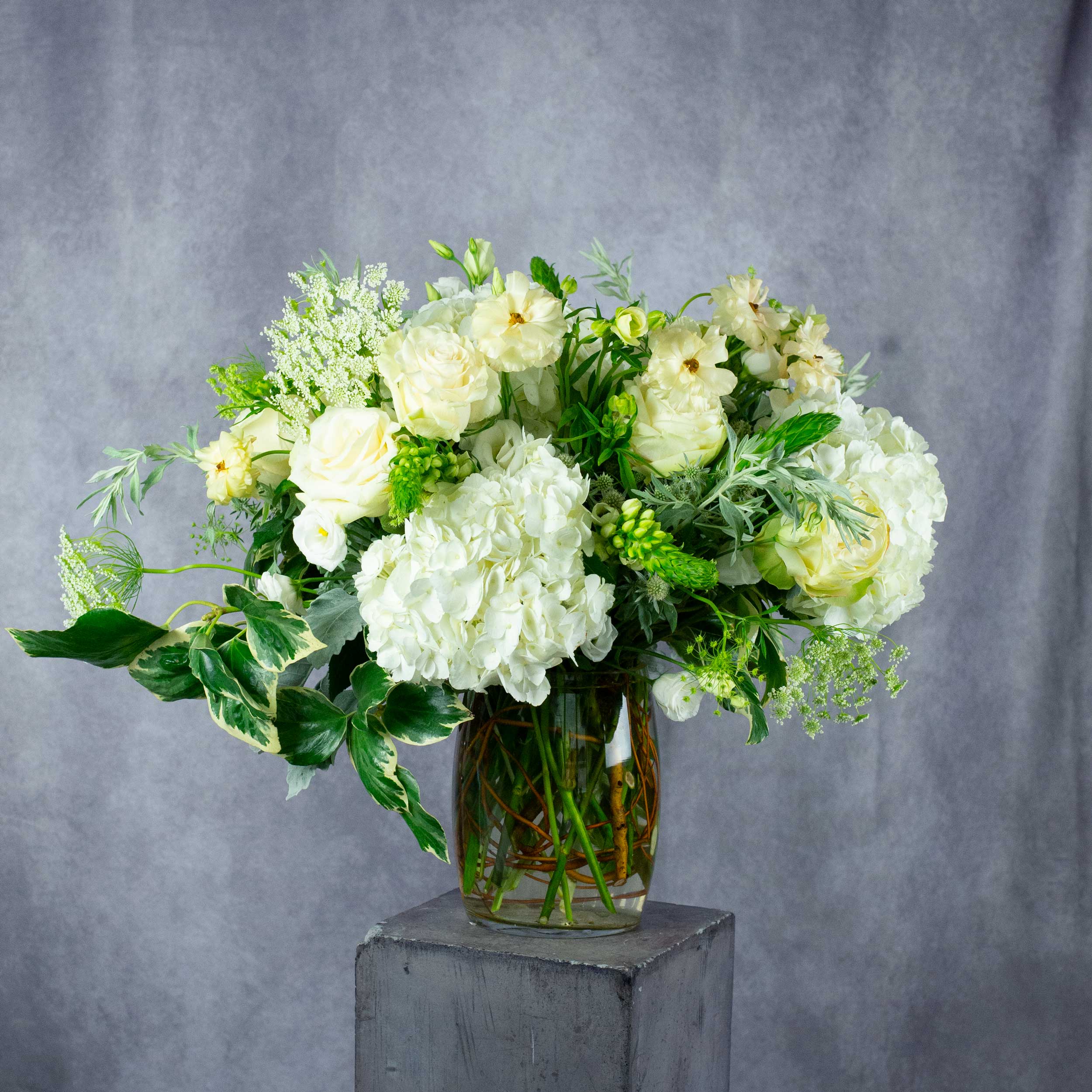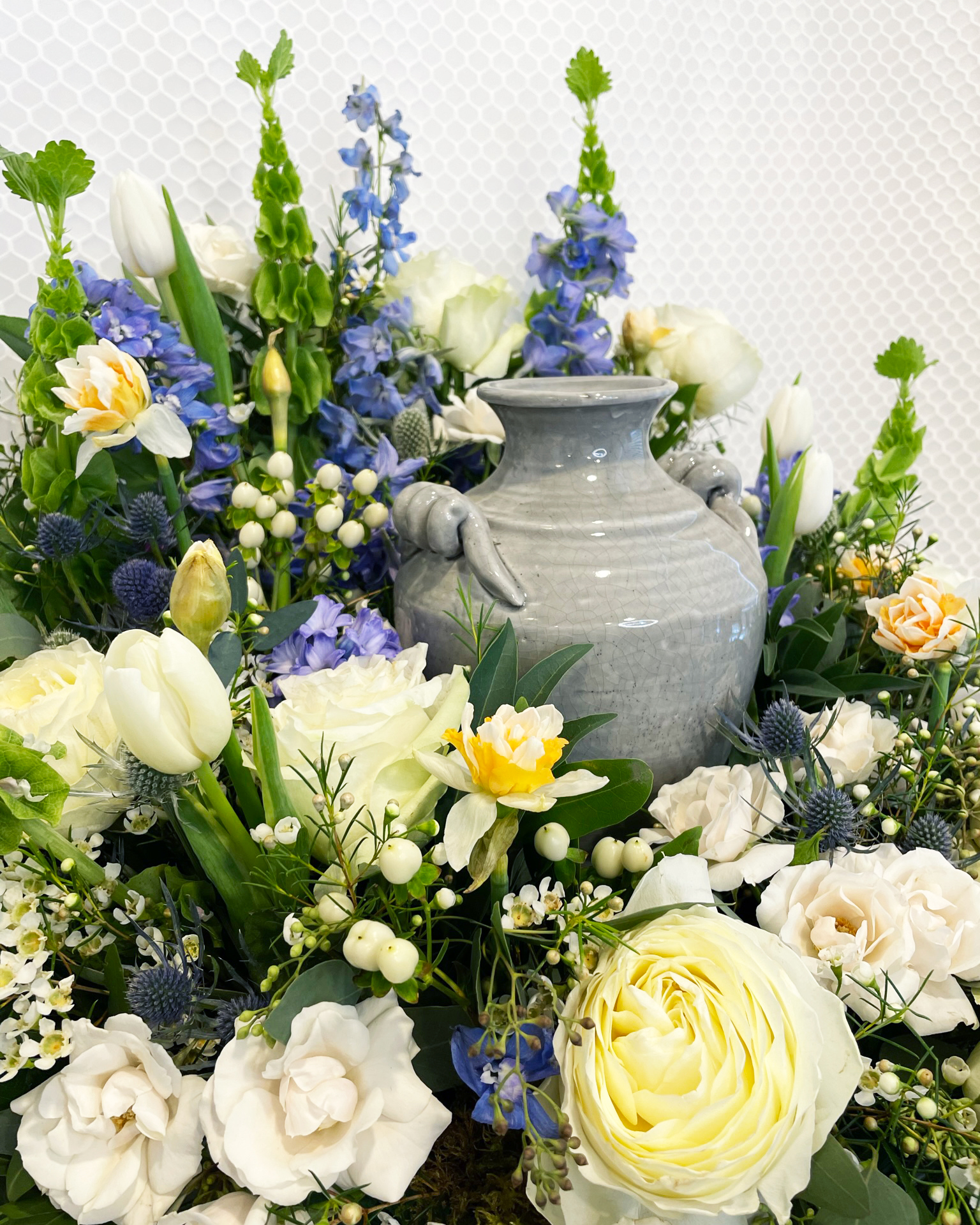 Each piece is thoughtfully composed to express memory and grace, offering comfort through beauty rather than sorrow. Whether for a memorial service, visitation, or private remembrance, our arrangements are designed to feel personal, meaningful, and quietly elegant—never conventional or “funeral-like.” In addition, we offer vased arrangements designed for the home in your prefered color palette—graceful, comforting gestures that express love and remembrance with quiet elegance.