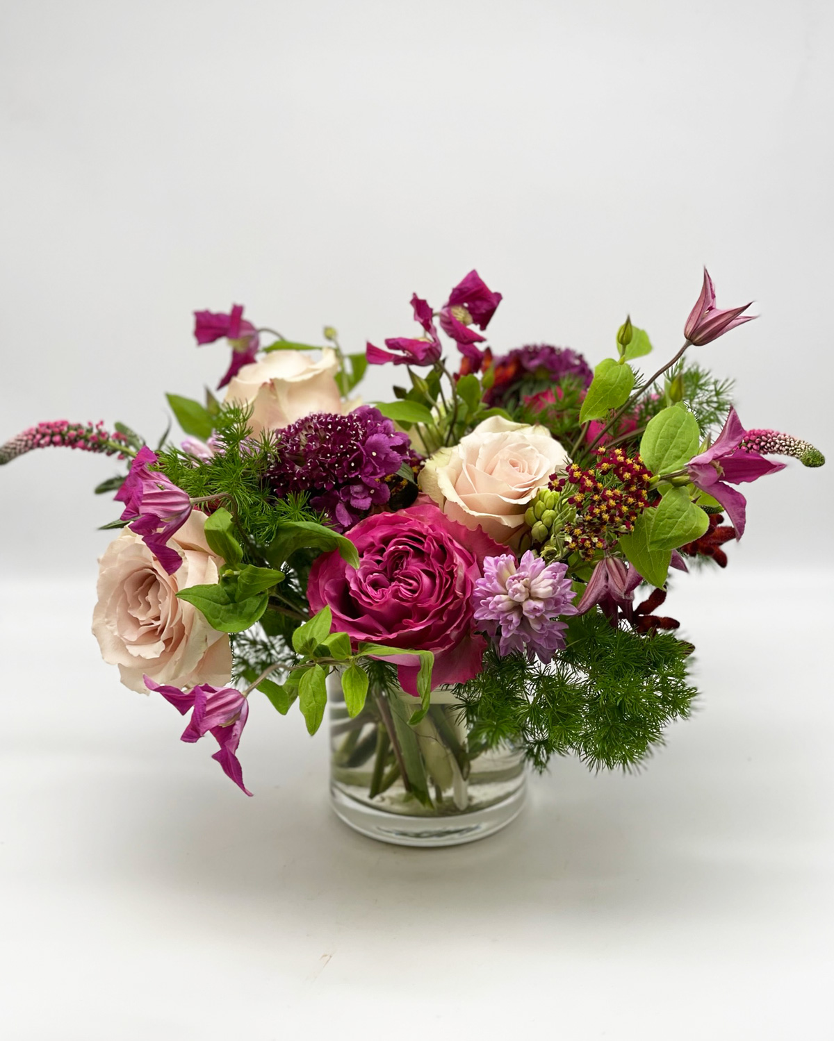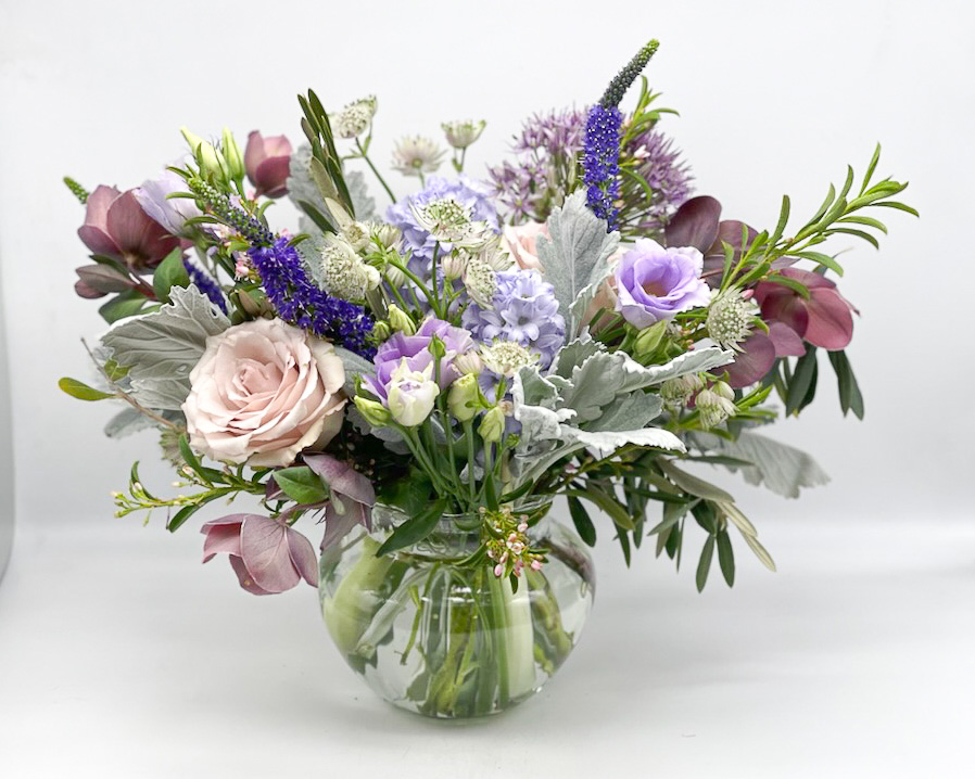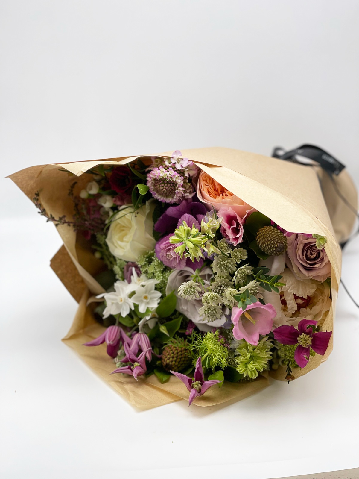 Available as a Hand-Tied Bouquet or Vased Arrangement, Violet Élan is ideal for spring celebrations, early summer gatherings, thoughtful gifting, or simply bringing a breath of the garden indoors.